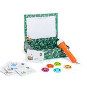 Set sadrži tri diska, od kojih svaki ima 8 slika. Slike na disku ne sadrže tekst, već samo slike, tako da imate priliku da zajedno sa mališanima maštate svoju priču. Ova divna igra vas podstiče da izmišljate priče i provodite kvalitetno vrijeme zajedno. Ova lampica projektor se jednostavno koristi, ubacite disk, upalite lampu i projektujete sliku na plafon ili zid. Prstom pomjerajte disk kako bi se slike lagano smenjivale – i usput pričajte priču.