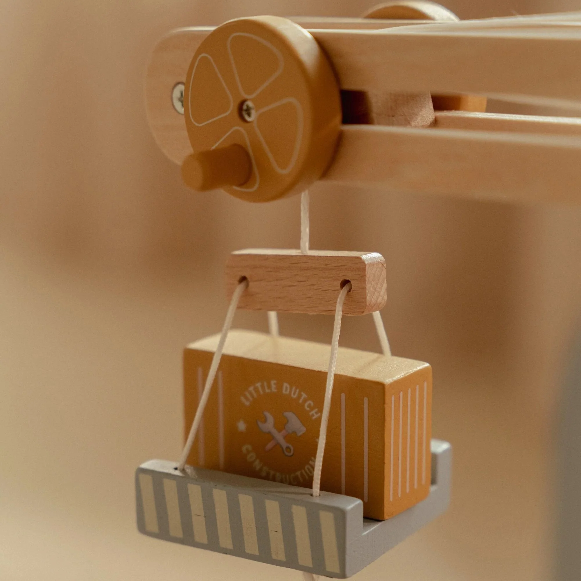 Vrijeme je da se počne sa radom na gradilištu! Sa ovom drvenom dizalicom, mali graditelji mogu da podižu, zamahuju i spuštaju teške terete kao pravi profesionalci. Okrenite dugme da biste podigli materijale visoko u vazduh, a zatim ih pažljivo spustite na mjesto — timski rad ostvaruje san!