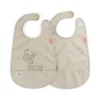 U setu dolaze dvije mekane, vodootporne portikle sa praktičnim čičak-zatvaračem i pametnim džepićem koji hvata zalogaje koji pobjegnu. Lako se brišu, a mogu se i nježno oprati na 30°C.