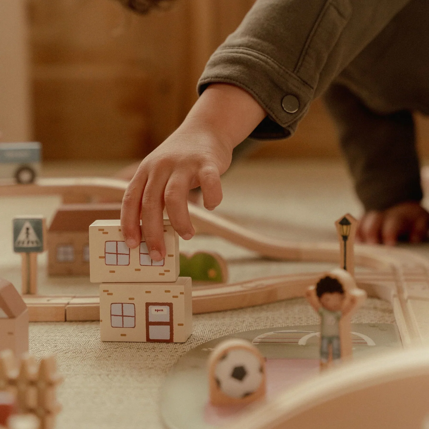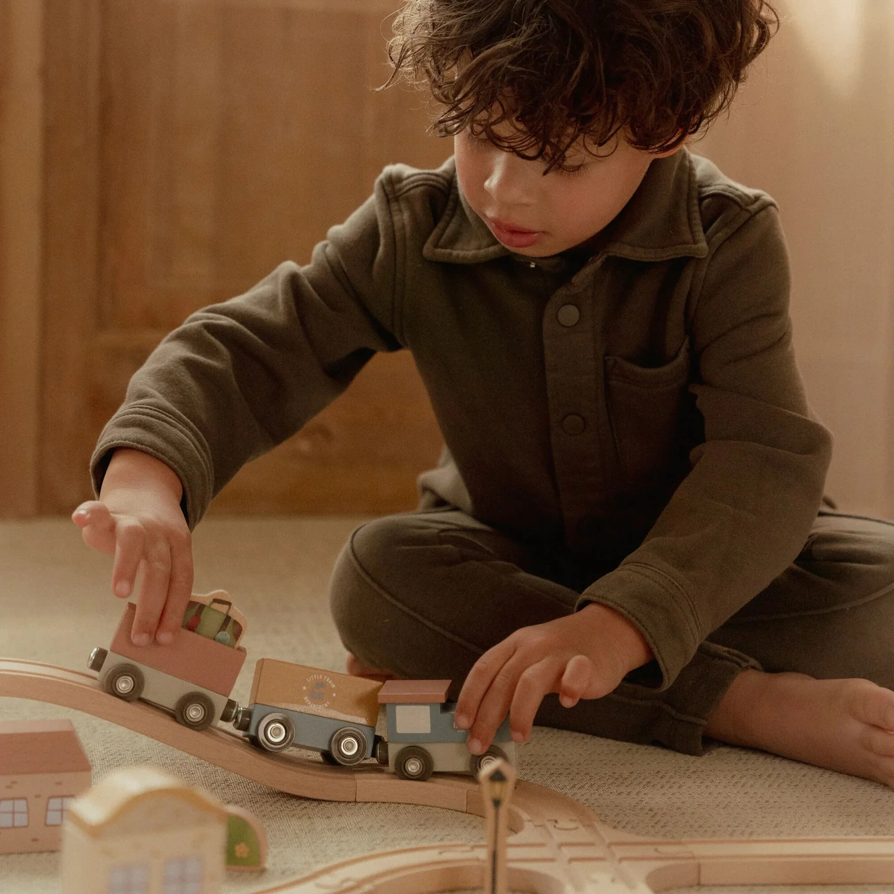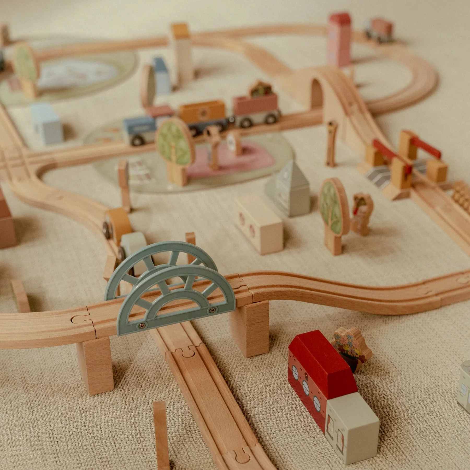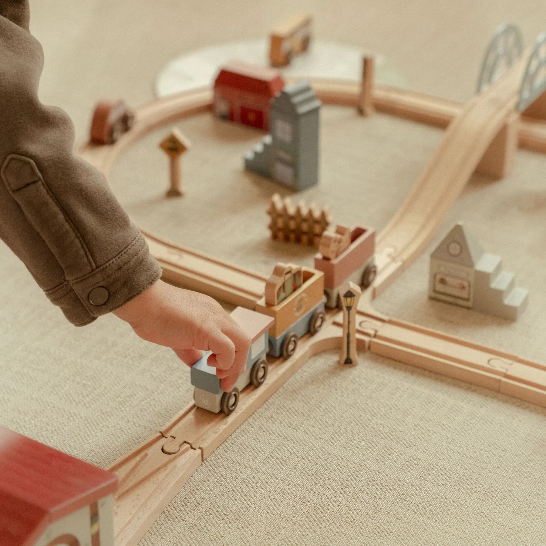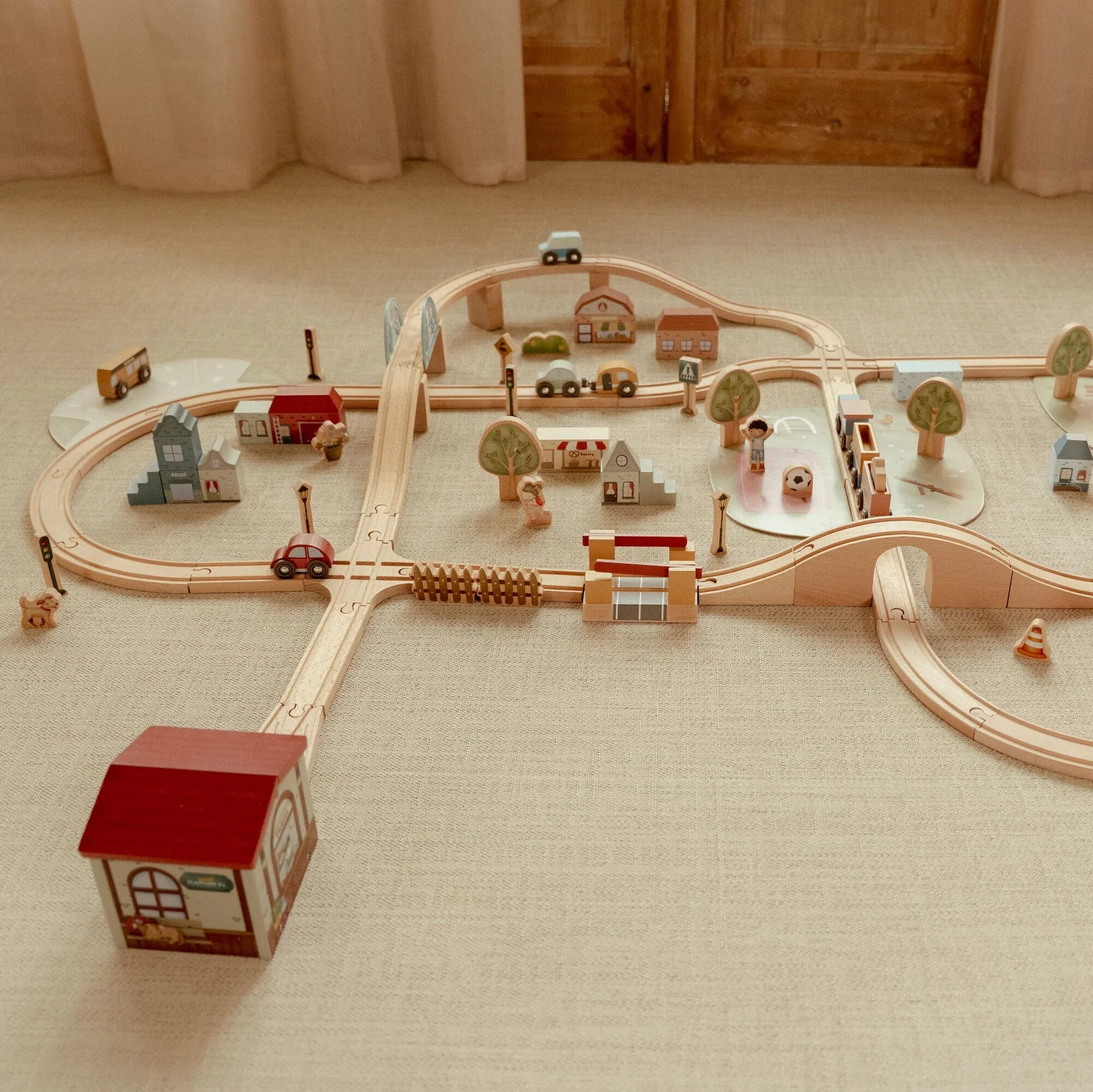 Izgradite svoj svijet uz pomoć drvenog Little Dutch seta vozića! Ovaj obimni set uključuje lokomotivu, vagone, pruge, mostove, zgrade, automobile i figure. Tu su i drveće i saobraćajni znaci. Mogućnosti su beskrajne! Prevezite voz preko mosta, zaustavite se na stanici i istražite grad. Kombinujte set vozova XL sa proširenim setovima kako biste igru učinili još zabavnijom. Da li se pridružujete?