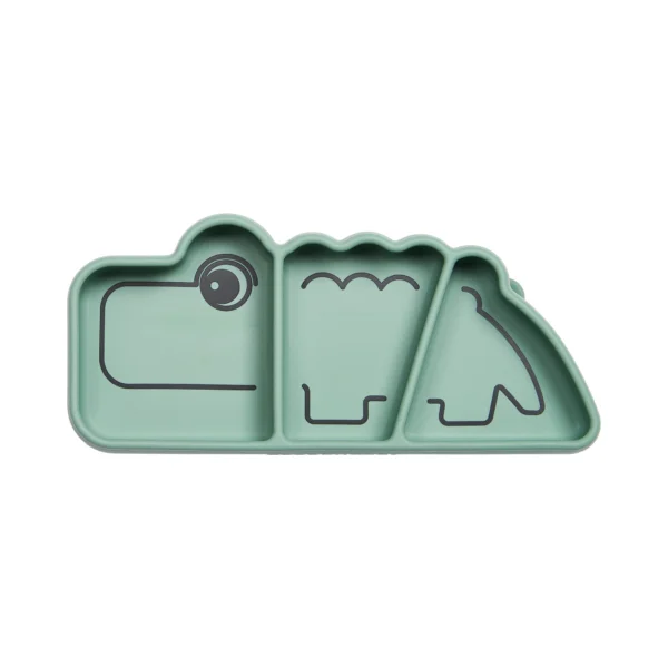 Silikonski Stick&Stay tanjir Croco Green s tri pregrade idealan je za male grickalice.