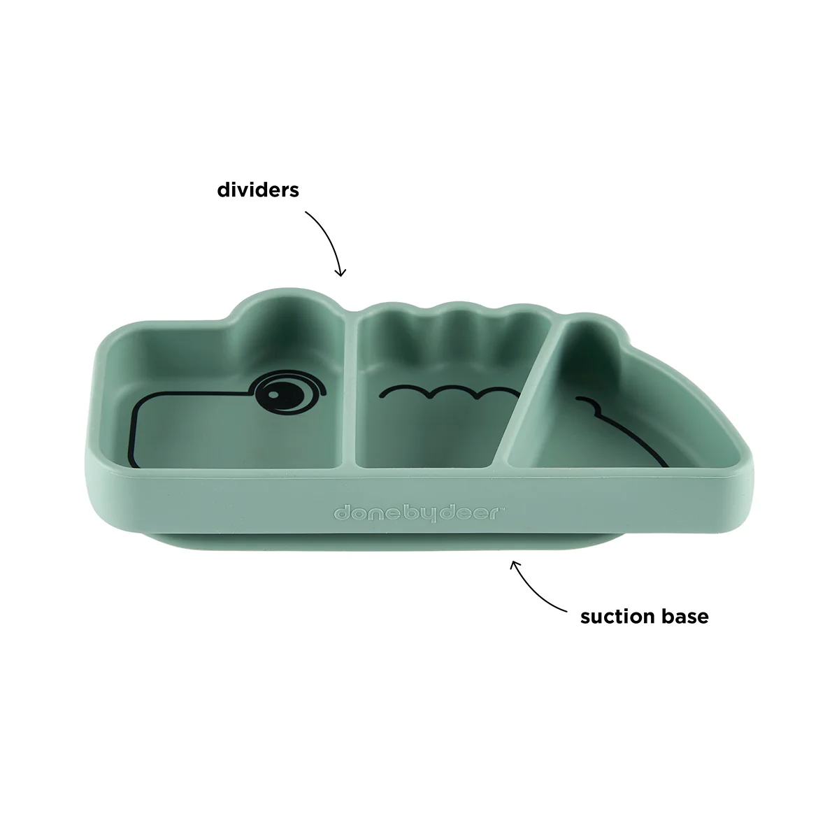 Silikonski Stick&Stay tanjir – Croco Green, Done by Deer