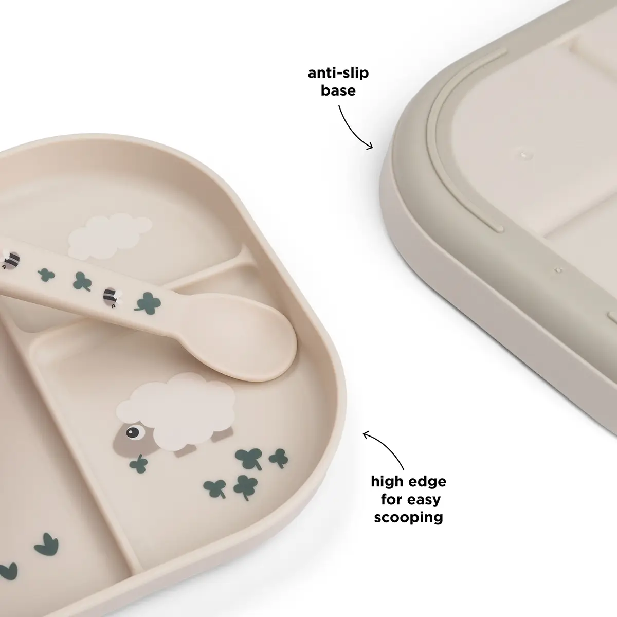 Praktična neklizajuća baza drži tanjir čvrsto na mjestu tokom obroka, što olakšava hranjenje i čini ga sigurnim za svakodnevnu upotrebu. idealan za dinamične dječje obroke.